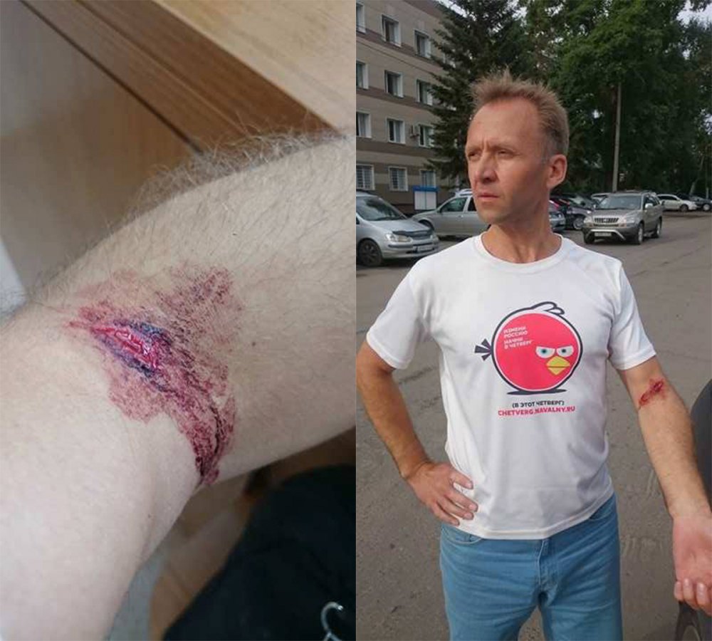 Сам активист в разговоре с «Коммерсантом» утверждает, что один из нападавших полоснул его ножом по локтевому сгибу руки. Косарецкий также считает, что таким образом ему пытались помешать подать заявку на мероприятия.
