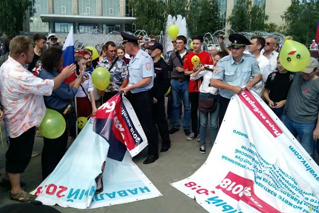 Штаб Навального планировал провести акцию на площади Пименова еще до истории с появлением полиции и изъятием тиража. Как сообщает издание «Сиб.фм», заявку на проведение мероприятия подавали еще 23 июня. 26 власти согласовали «агитационную кампанию» с участием 10 человек, но 6 июля отказали. В результате было решено провести акцию в формате общения с прессой и между собой. Участники расстелили плакаты на асфальте, чтобы не держать их в руках (поскольку в таком случае мероприятие посчитали бы несогласованным пикетом — что, впрочем, все равно произошло). Сергей Бойко раздал всем желтые шарики с уточками. Один участник держал над головой чистый лист бумаги, пишет издание. Часть плакатов отобрала полиция.