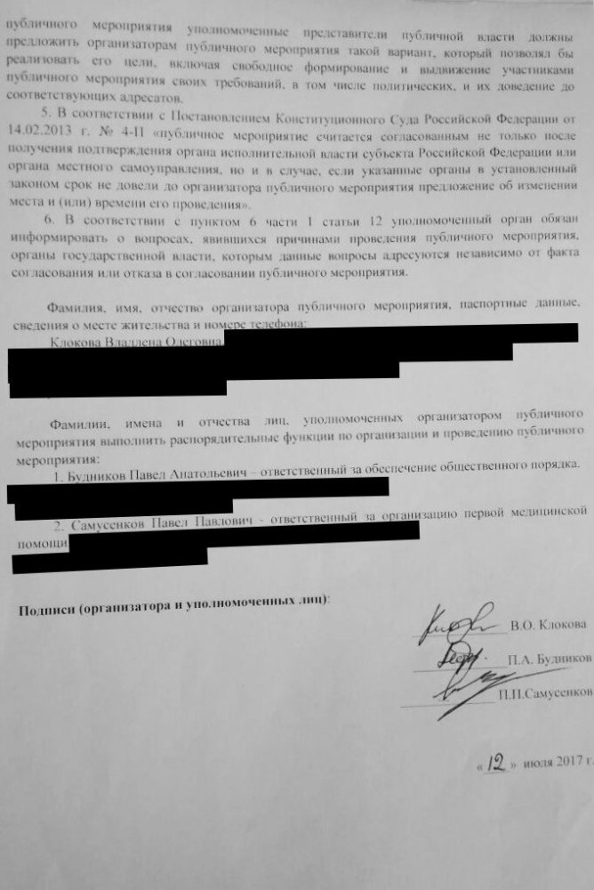 UPD: Павла Самусенкова отпустили из отдела полиции без протокола, на Клокову составляют протокол по ст. 19.3 КоАП (неподчинение требованиям полицейского), затем её собираются везти в Заводской районный суд.​