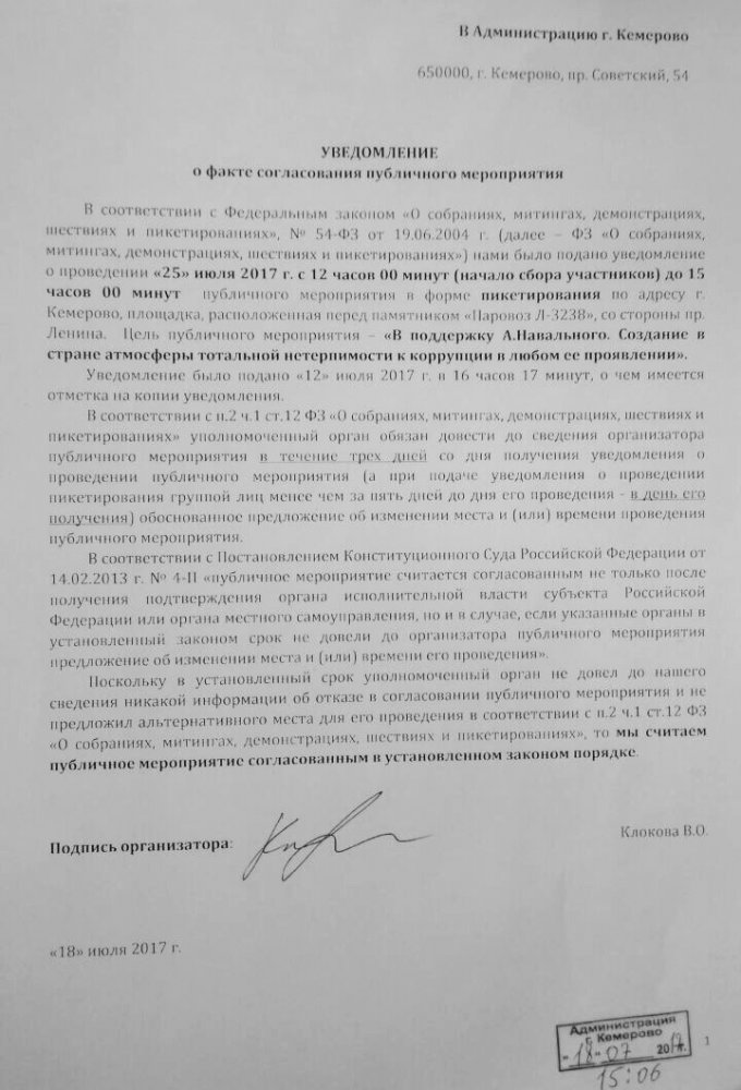 В Кемерове задержаны активисты Владлена Клокова и Павел Самусенков. Об этом ОВД-Инфо сообщила Ольга Малышкина. По ее словам, активистов задержали за информирование граждан на кубе в поддержку Алексея Навального и дальнейшее пикетирование без куба. Куб отобрали сотрудники полиции, задержанных везут в отдел полиции «Заводский».