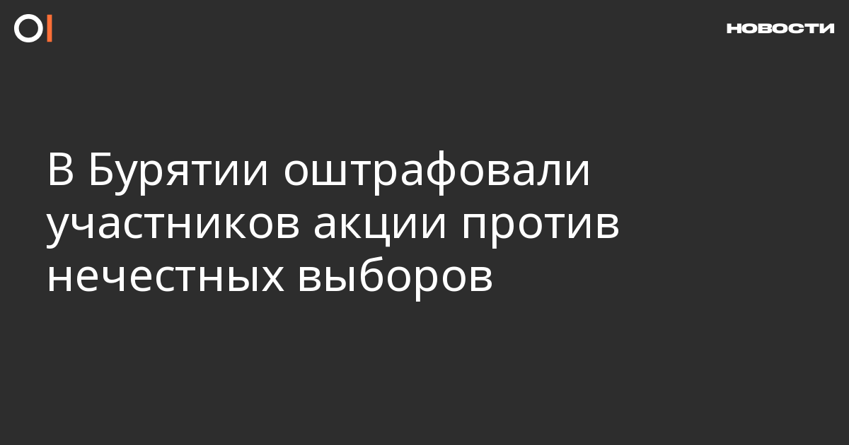 Советский районный суд Улан-Удэ оштрафовал 2 августа шестерых участников акции против нечестных выборов, которая прошла возле здания правительства республики 1 августа. Об этом сообщает информационное агентство «Восток-Телеинформ».