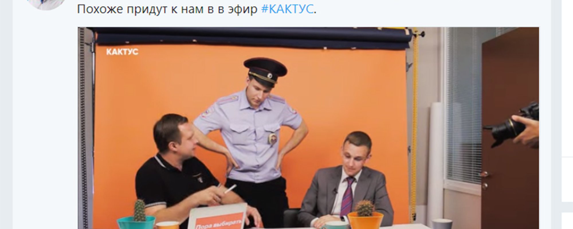 Сейчас Ляскин ведет прямой эфир передачи «Кактус», к нему пришли сотрудники полиции. По словам полицейского, вызов Ляскина в полицию связан с «видео на ютубе».
