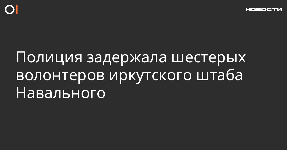 В Иркутске задержали шестерых волонтеров местного штаба Алексея Навального. Их увезли в отдел полиции, сообщил в фейсбуке координатор штаба Сергей Беспалов.