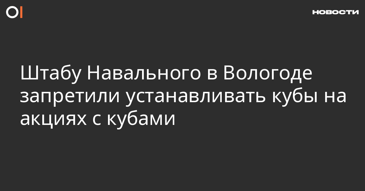 Власти Вологды согласовали местному штабу Алексея Навального проведение пикетов с агитационными кубами, запретив при этом установку сборно-разборных конструкций. Об этом в своем блоге в LiveJournal пишет координатор штаба Евгений Доможиров.