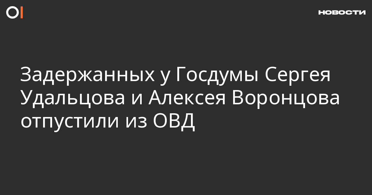 Полиция отпустила Сергея Удальцова и Алексея Воронцова, задержанных у здания Госдумы. Протоколы об административном правонарушении составлять не стали, сообщил Удальцов в твиттере.