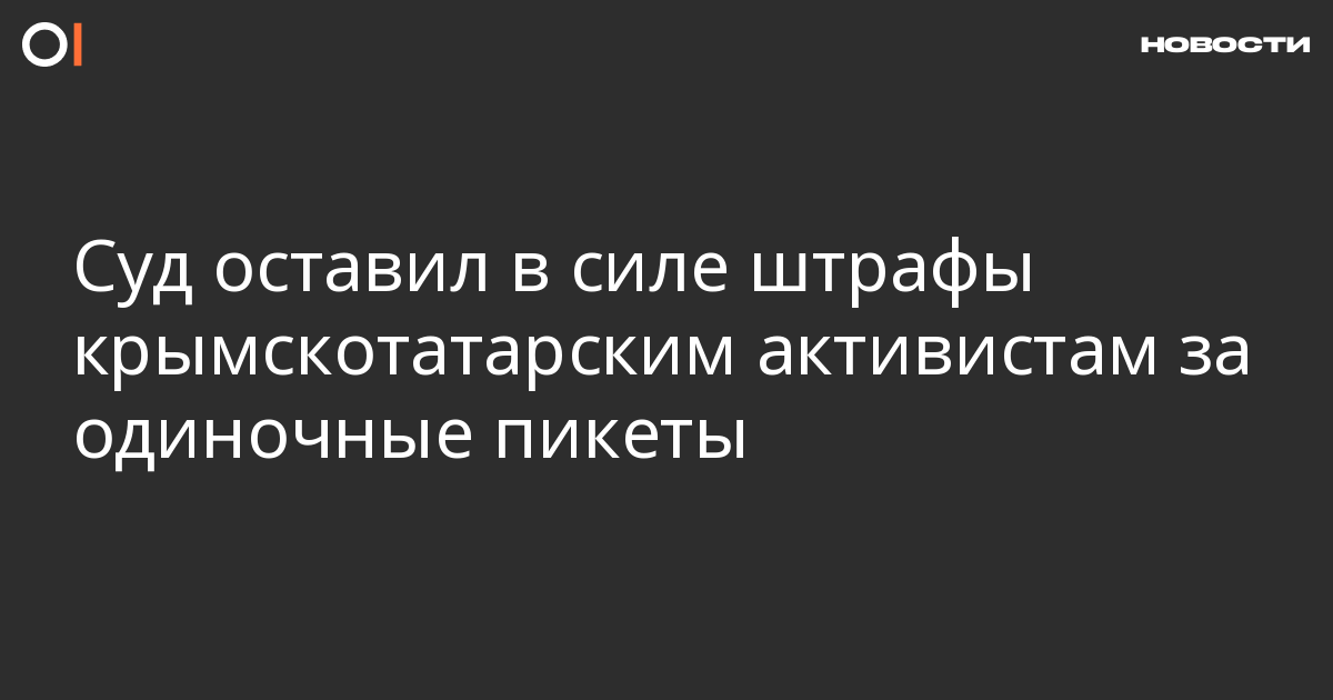Верховный суд Крыма 28 сентября отклонил жалобы защиты на штрафы крымскотатарским активистам Серверу Караметову и Ярикулу Давлатову. Решения нижестоящего суда оставили в силе, пишет портал Avdet.org.