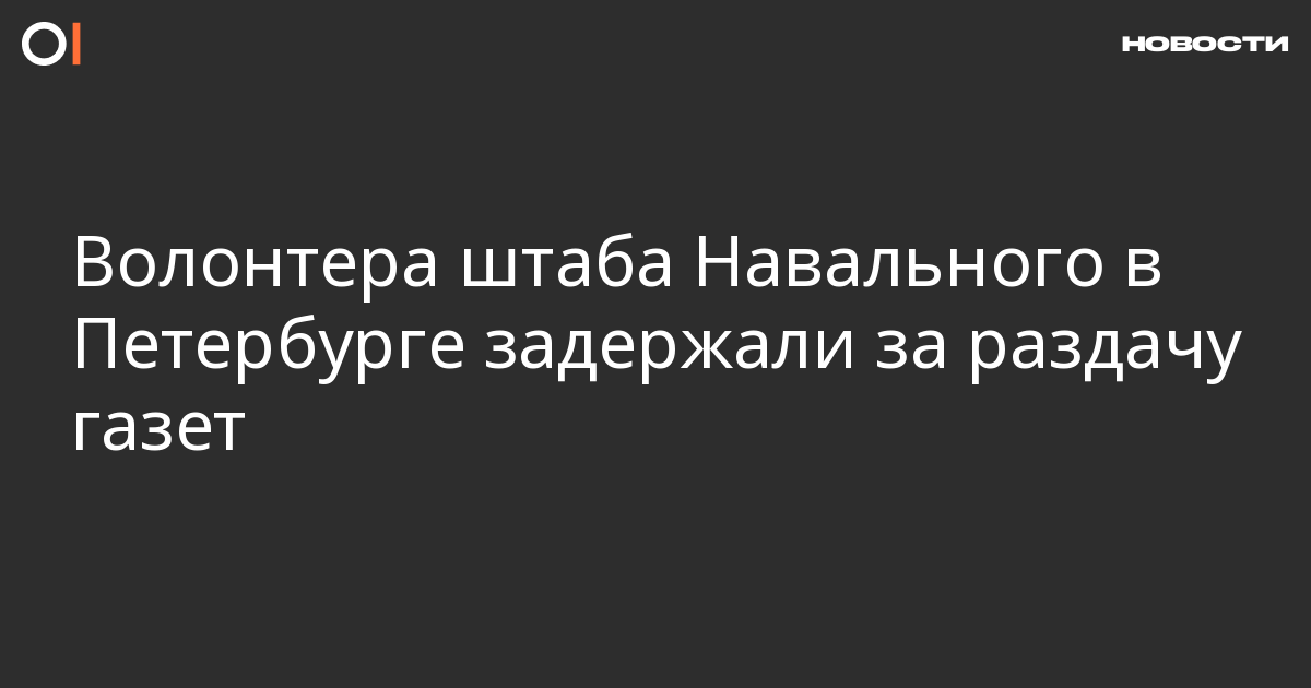 Волонтера штаба Алексея Навального в Санкт-Петербурге задержали за раздачу газет в поддержку политика у метро «Спортивная». Об этом сообщается в твиттере штаба.