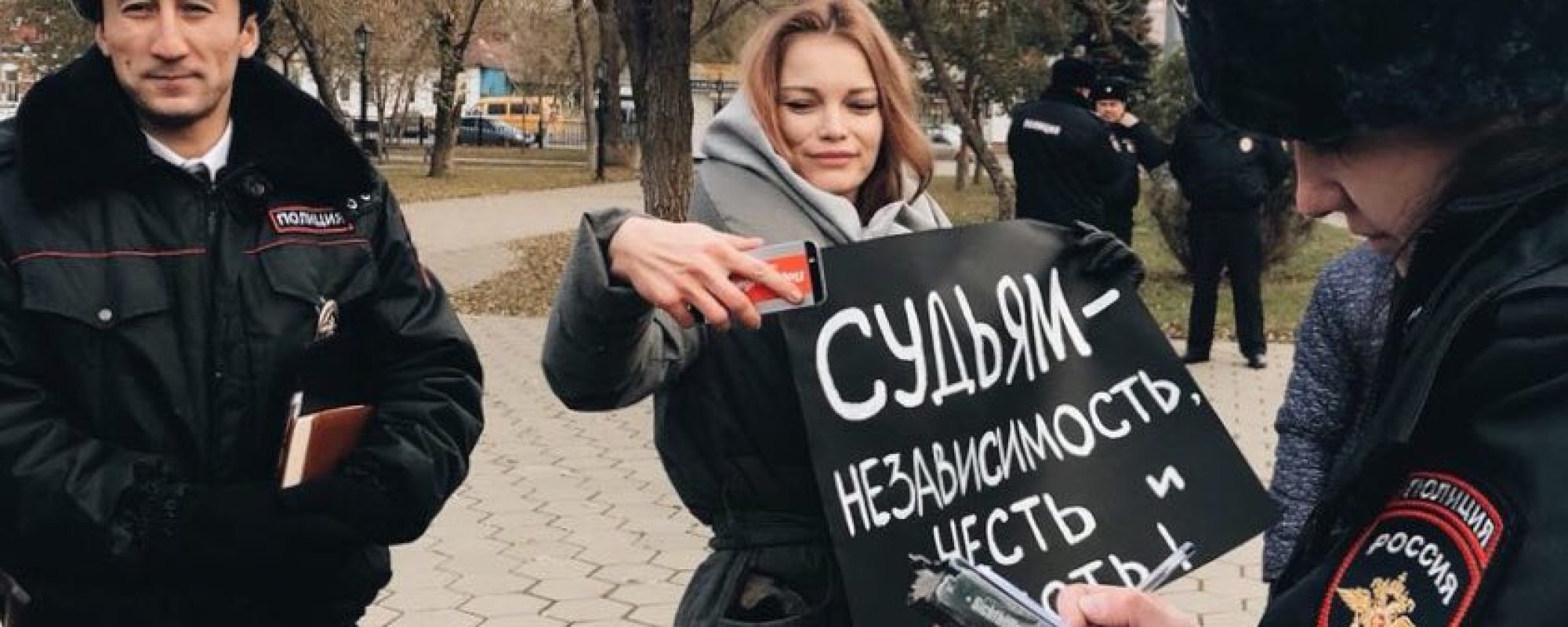 Утром в Оренбурге во время одиночного пикета у суда полиция задержала координатора местного штаба Навального Наталию Трубачеву, а также двух сотрудников штаба, которые снимали и фотографировали акцию. В руках Трубачева держала плакат с надписью: «Судьям — независимость, честь и совесть», полиция считает, что активистка должна была заранее уведомить администрацию города о проведении пикета. Всех задержанных везут в отдел полиции № 2. Об этом ОВД-Инфо сообщил активист движения «Весна» Роман Мистраль.