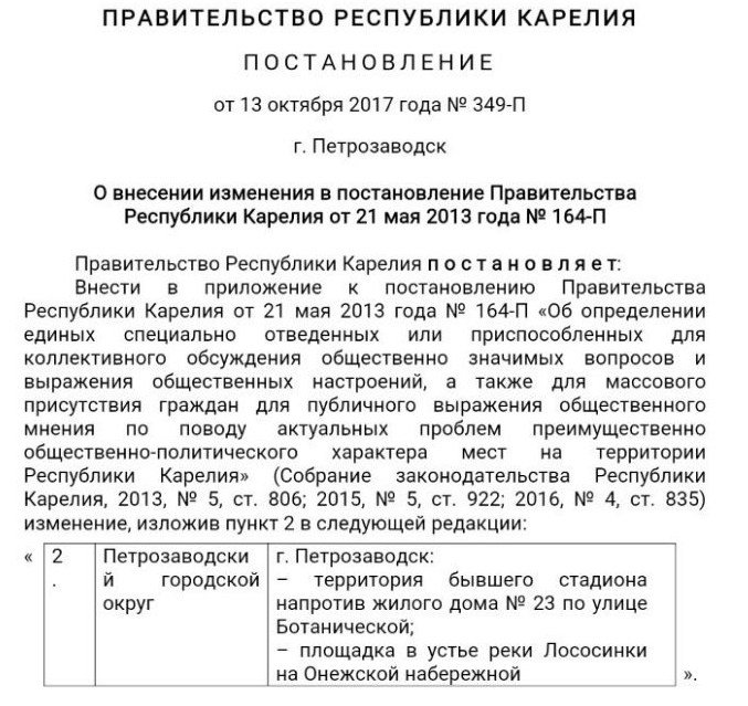 13 октября Глава Республики Карелия Артур Парфенчиков подписал постановление, которое исключило площадь Кирова (центральная площадь города) в Петрозаводске из перечня гайд-парков. Об этом пишет портал «Черника».