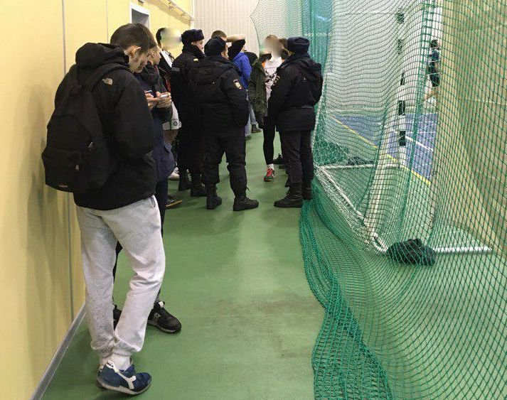 «Сначала они пришли и просто интересовались, что тут происходит. Потом начали выдергивать по одному, потом забирать паспорта. Документы отфотографировали», — рассказал собеседник ОВД-Инфо. Какое-то время участников не выпускали из здания. Как пишут в телеграм-канале, в это время полиция «с собаками под окнами круги наворачивала». То, что сотрудники правоохранительных органов приехали со служебными собаками, подтвердил и другой очевидец. Спустя время антифашистов стали выпускать из спорткомплекса покурить. Постепенно всем вернули документы.