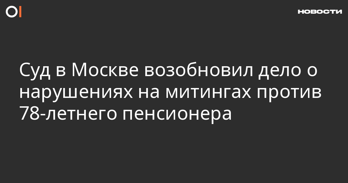 Преображенский районный суд Москвы постановил возобновить процесс по делу 78-летнего Владимира Ионова, которого обвинили в неоднократном нарушении порядка проведения публичных мероприятий (статья 212.1 УК). Об этом сообщает «Медиазона» со ссылкой на адвоката международной правозащитной группы «Агора» Ольгу Динзе.