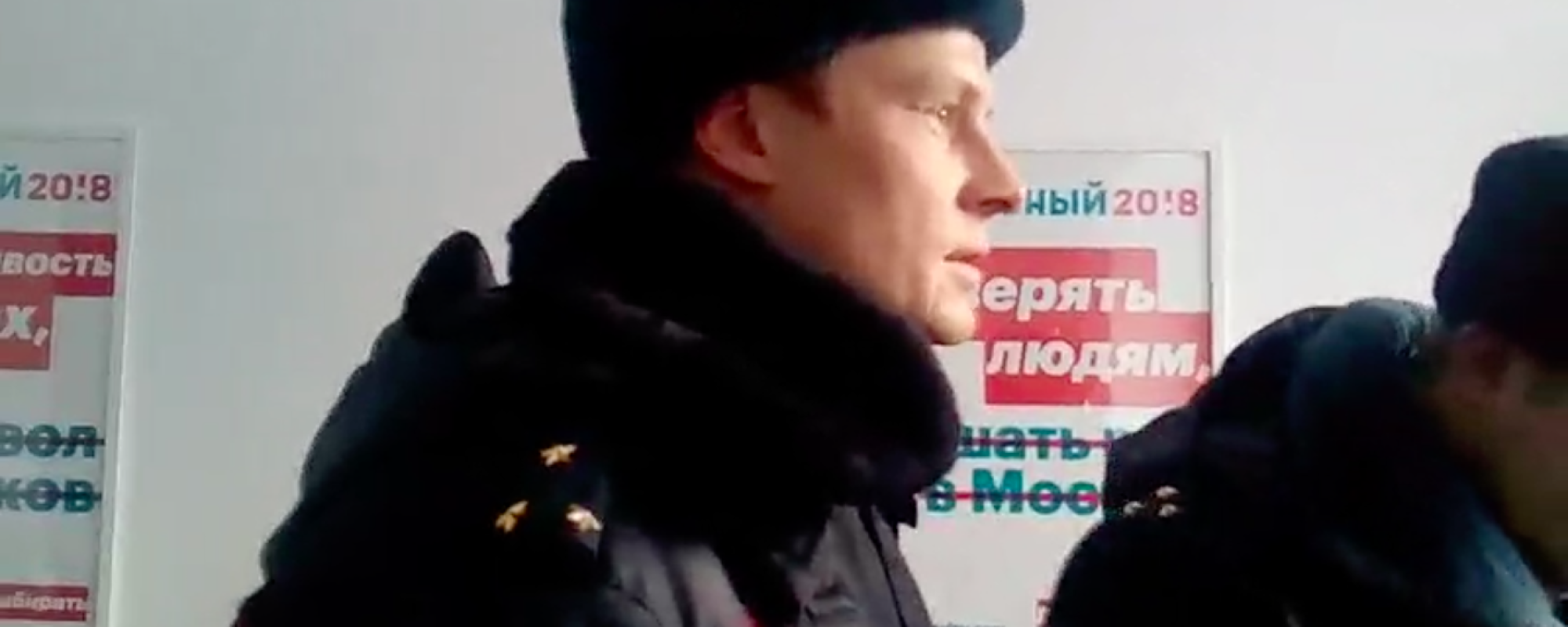 Удостоверение предъявил только один сотрудник полиции. На просьбу активиста штаба показать нагрудный знак, полицейский спросил «А зачем он вам?».