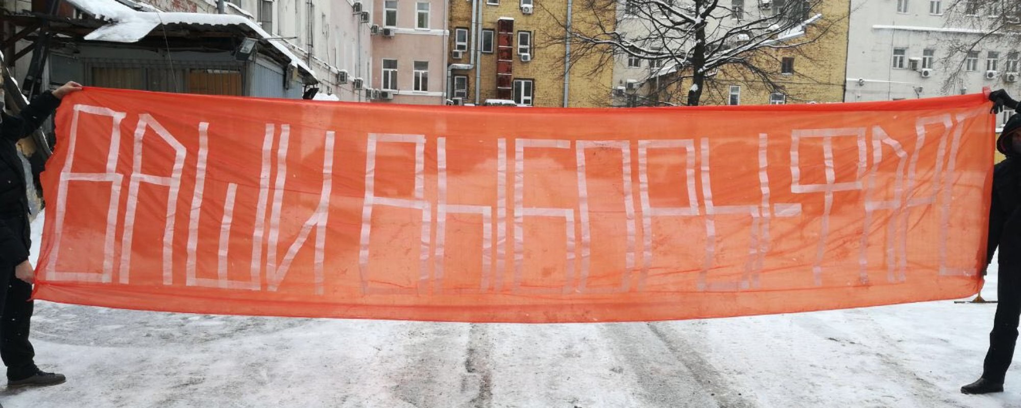 Активисты проводили акцию протеста под лозунгом: «Выборам — нет! Отмене итогов приватизации — да!».