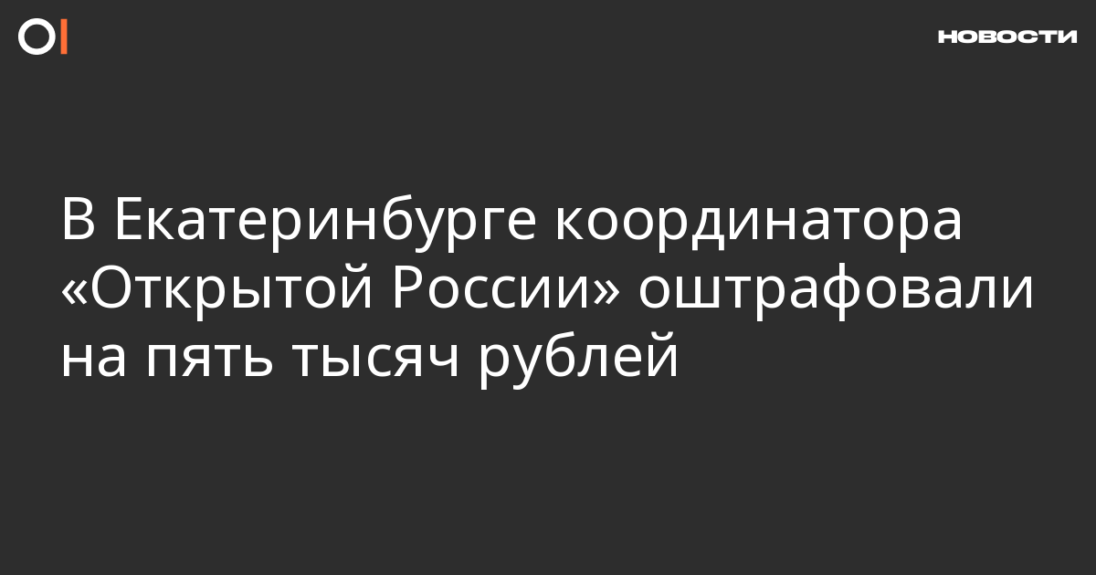 Октябрьский районный суд Екатеринбурга оштрафовал координатора регионального отделения движения «Открытая Россия» Максима Верникова на пять тысяч рублей. Об этом сообщает «МБХ Медиа». Верникова признали виновным в осуществлении деятельности организации, признанной на территории России «нежелательной» (ст. 20.33 КоАП).