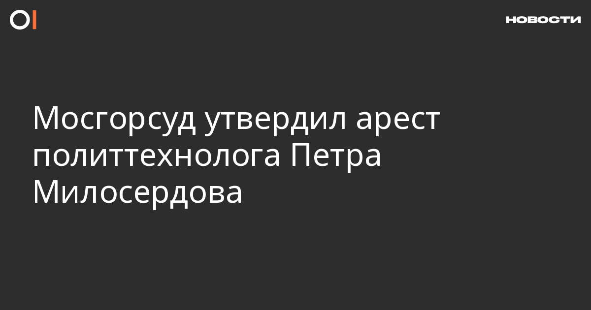 Мосгорсуд признал законным арест политтехнолога Петра Милосердова, обвиняемого в создании экстремистского сообщества (ч. 1 ст. 282.1 УК). Об этом пишет агентство «Москва» со ссылкой на пресс-службу суда.