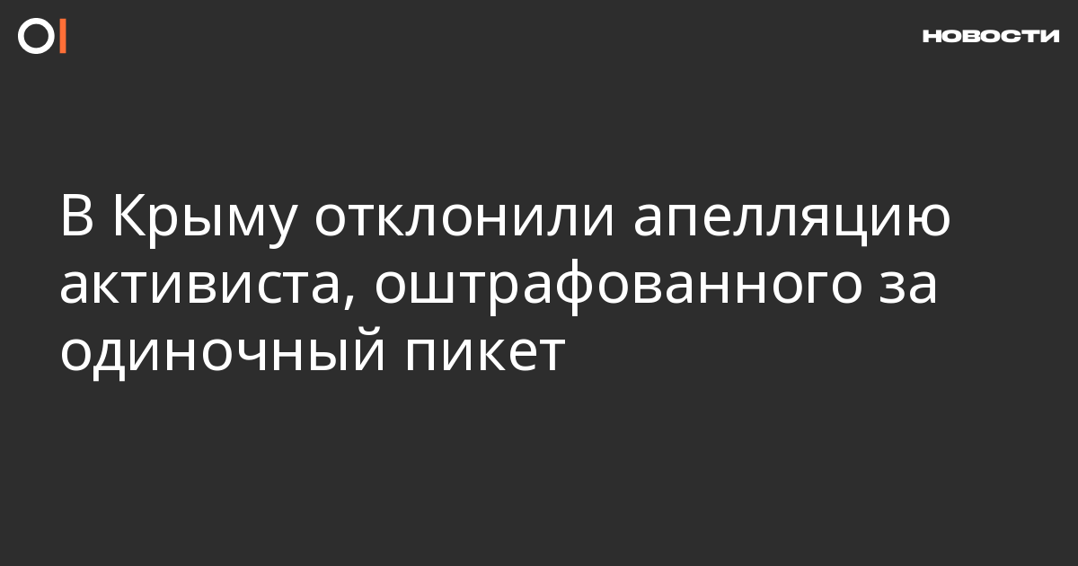 Верховный суд Крыма отклонил апелляцию татарского активиста Рустема Усманова на решение о штрафе за одиночный пикет. Об этом сообщил сайт «Крым. Реалии»