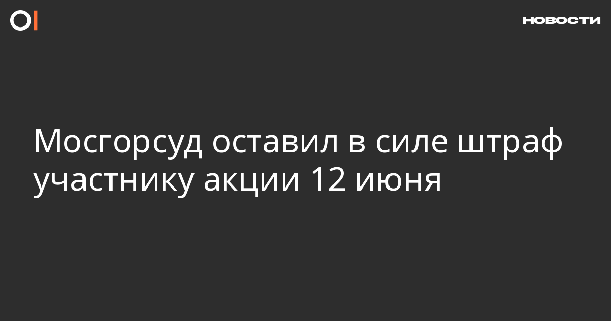 Московский городской суд 6 марта оставил в силе штраф участнику акции 12 июня Алексею Зеленову. Об этом ОВД-Инфо сообщил юрист Правозащитного центра «Мемориал» Денис Шедов.