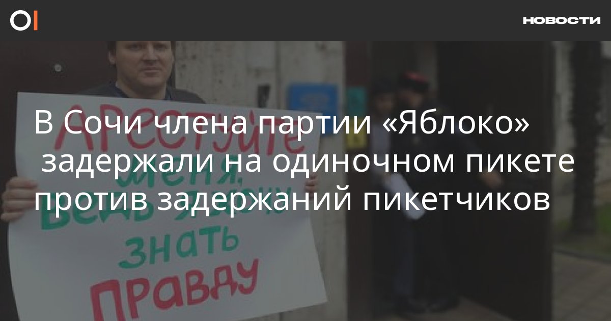 В Сочи 29 марта члена партии «Яблоко» Алексея Челмакина задержали во время одиночного пикета с плакатом с надписью «Арестуйте меня, ведь я хочу знать правду». Об этом сообщает «Кавказский Узел» со ссылкой на самого активиста.