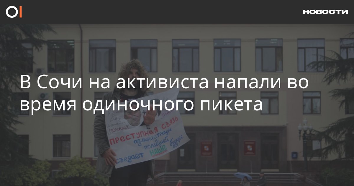 В Сочи на активиста Валерия Туаева напали, когда он стоял на одиночном пикете с плакатом с надписью «Преступная связь администрации с полицией съедает наше будущее». Об этом он сам сообщил ОВД-Инфо.