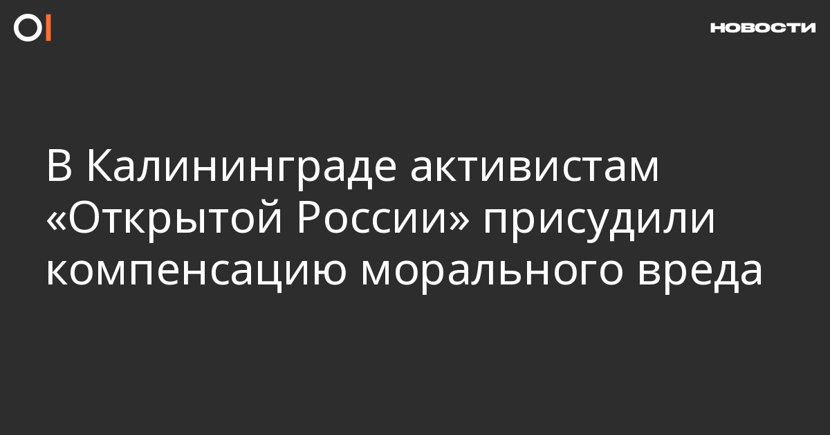 Суд Центрального района Калининграда постановил выплатить троим активистам «Открытой России» Якову Григорьеву, Петру Зуеву и Константину Крейну компенсацию за моральный вред и работу адвоката. Об этом сообщил координатор правозащитного отдела движения Алексей Прянишников.