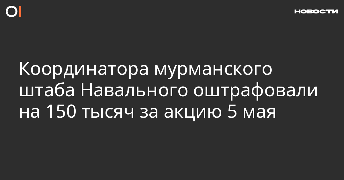 Октябрьский районный суд Мурманска оштрафовал главу штаба Алексея Навального Виолетту Грудину на 150 тысяч рублей за акцию «Он нам не царь». Об этом Грудина сообщила ОВД-Инфо.