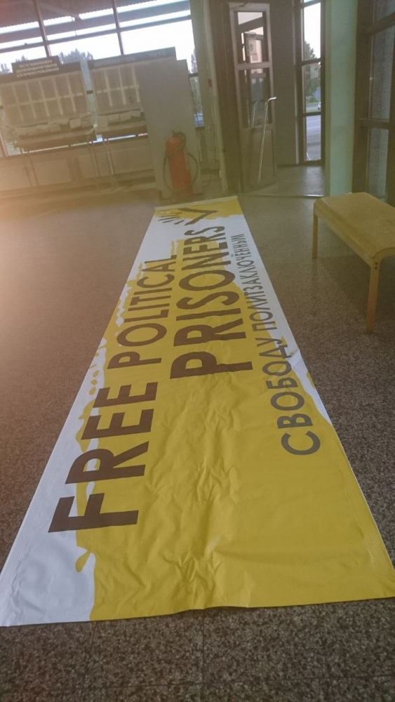 В сообщении «Открытой России» говорится, что с трех часов активисты находятся в зоне пограничного контроля. Плакаты и баннер отправили на экспертизу.