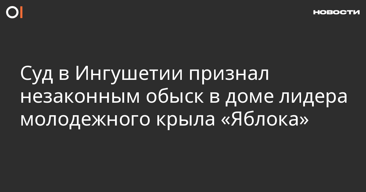 Верховный суд Ингушетии 30 октября признал незаконным обыск в доме лидера молодежного крыла и регионального отделения партии «Яблоко» Руслана Муцольгова, сообщает «Кавказский узел».