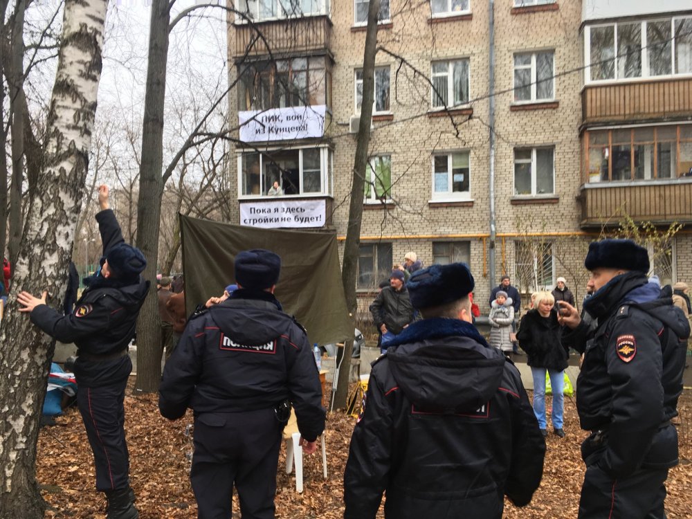 UPD 13:47 Митрохин написал в твиттере, что причиной задержаний стала установка палаточной базы в сквере на месте предполагаемой застройки.