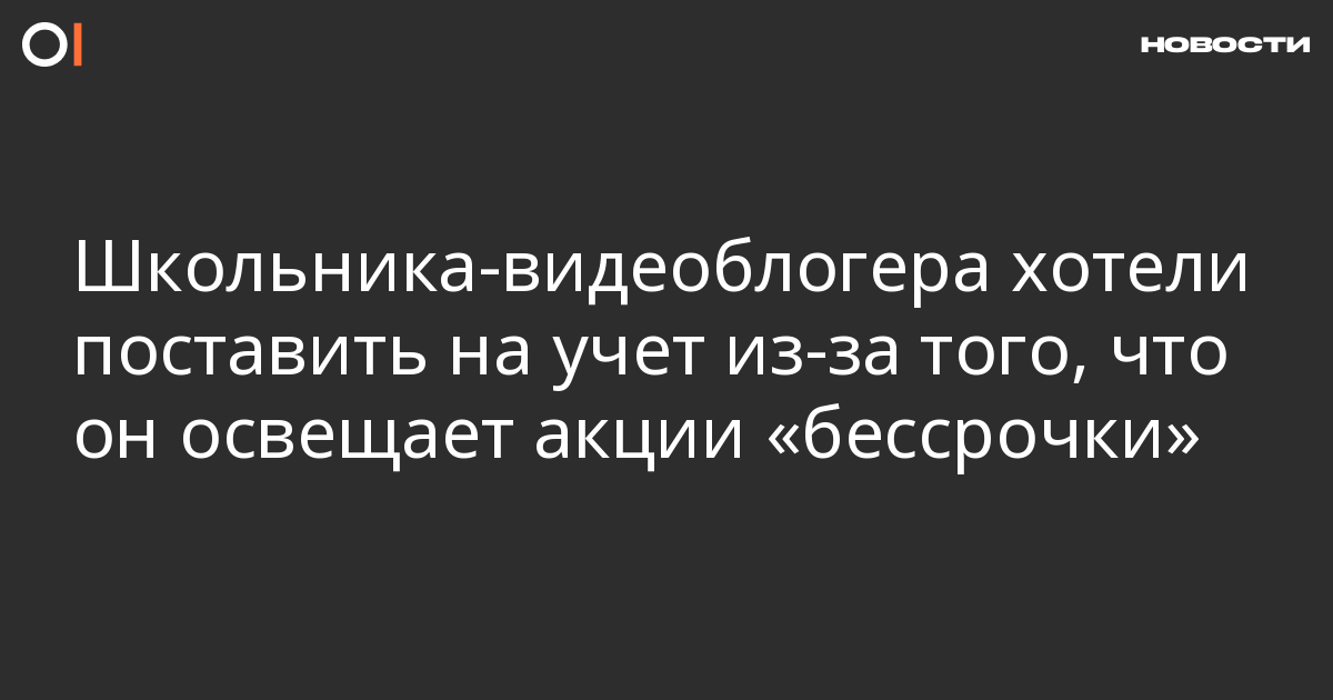 Ученика одной из московских школ хотели поставить на профилактический учет из-за того, что он ведет видеоблог, в котором освещает акции «бессрочного протеста». Сообщение с его историей опубликовал телеграм-канал «Протестный МГУ».