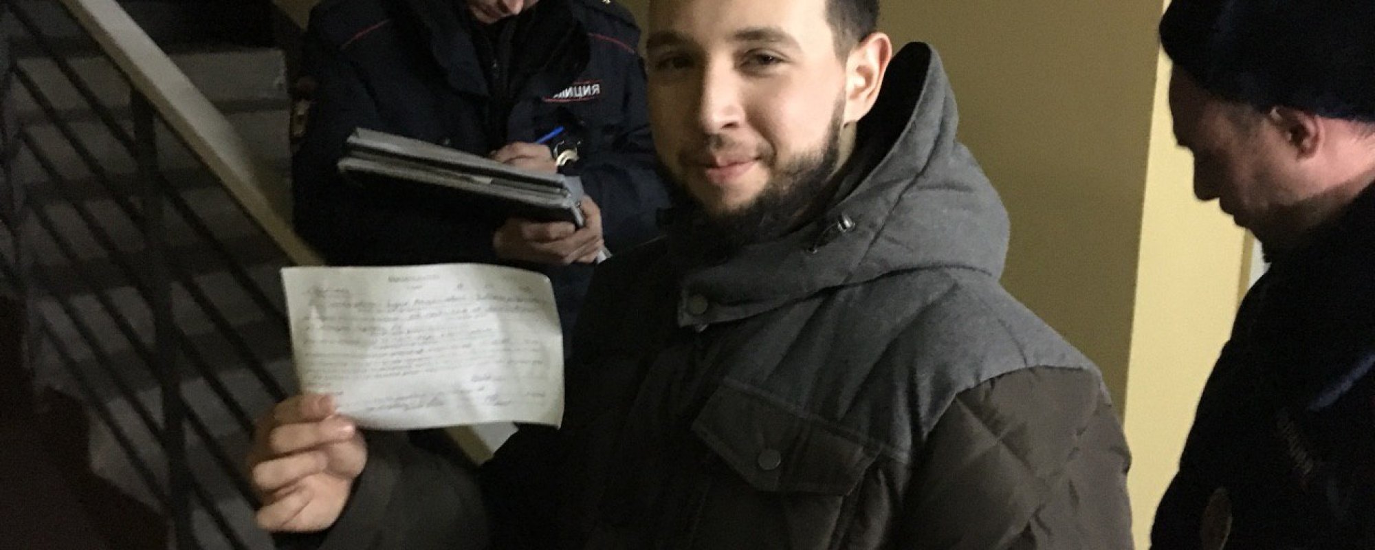 На видео, опубликованном активистом, видно, как сотрудники ЧОП ходят вокруг координатора, толкают его, громко кашляют, мешая вести запись, закрывают его лицо от камеры своими телефонами.