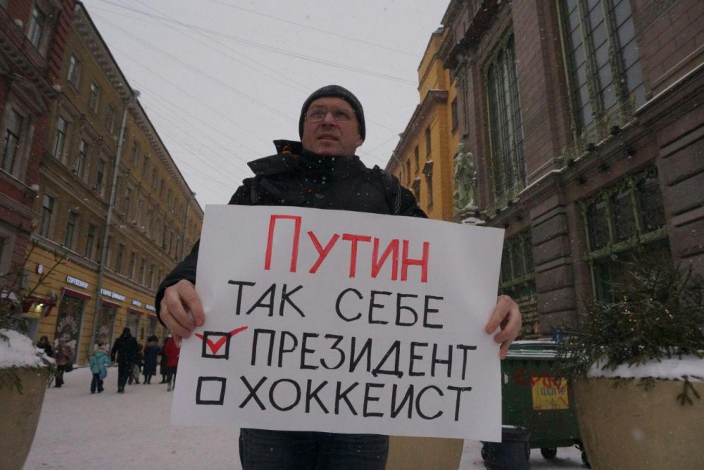 Активисты стояли в одиночных пикетах на Невском проспекте и на Малой Садовой улице. Роман Самойлов держал плакат с надписью «Только Госдума обижается на правду». У Александра Миронова был плакат «Беглов, спасибо за бесплатный каток».