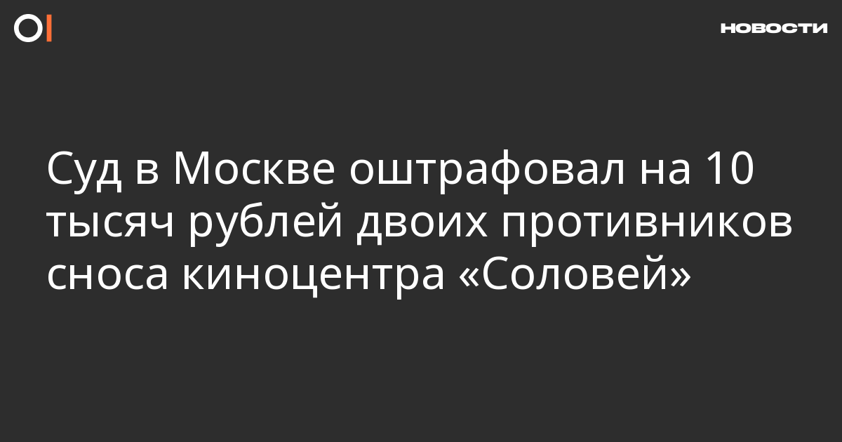Пресненский районный суд Москвы оштрафовал на 10 тысяч рублей двоих участников схода против сноса киноцентра «Соловей». Секретаря «Ассоциации народного сопротивления» Никиту Зайцева и участника акции Антона Омариева признали виновными в нарушении правил проведения акции (ч. 5 ст. 20.2 КоАП). Об этом ОВД-Инфо рассказал Зайцев.