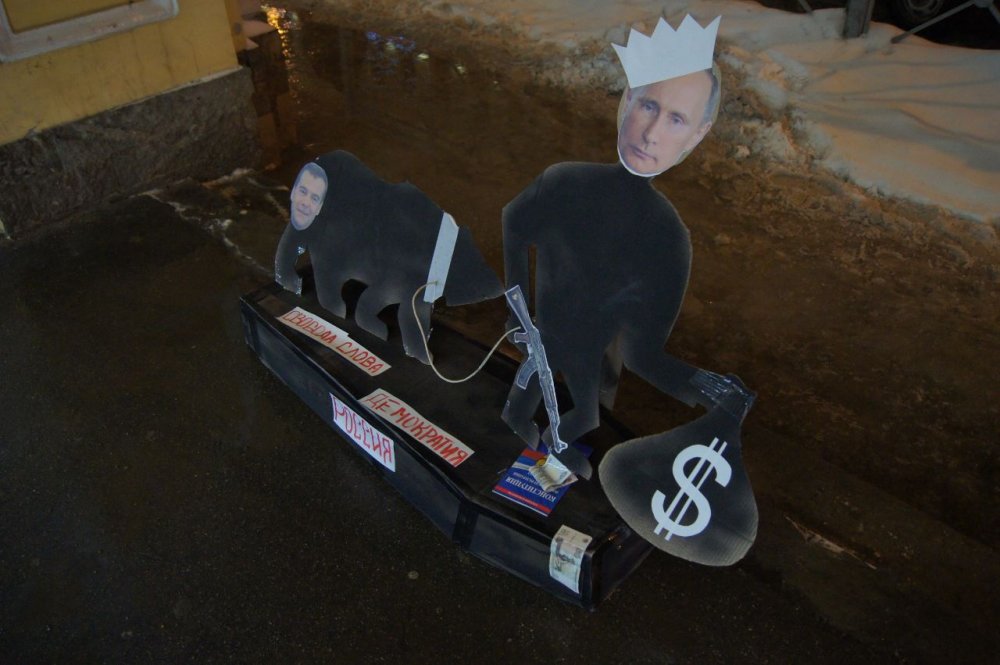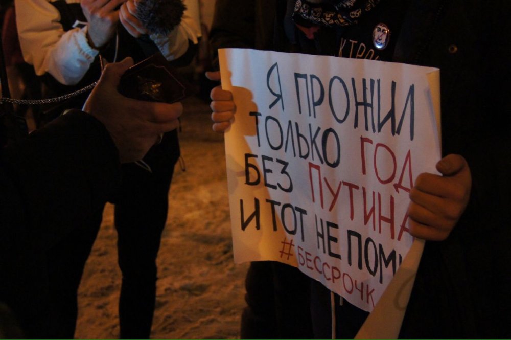 Самойлов стоял с плакатом «Я прожил только год без Путина и тот не помню». На плакате Карева было написано: «Власть — это народ, а не Путин и правительство. Ч. 3 ст. 3 Конституции РФ: высшим непосредственным выражением власти являются референдум и свободные выборы».