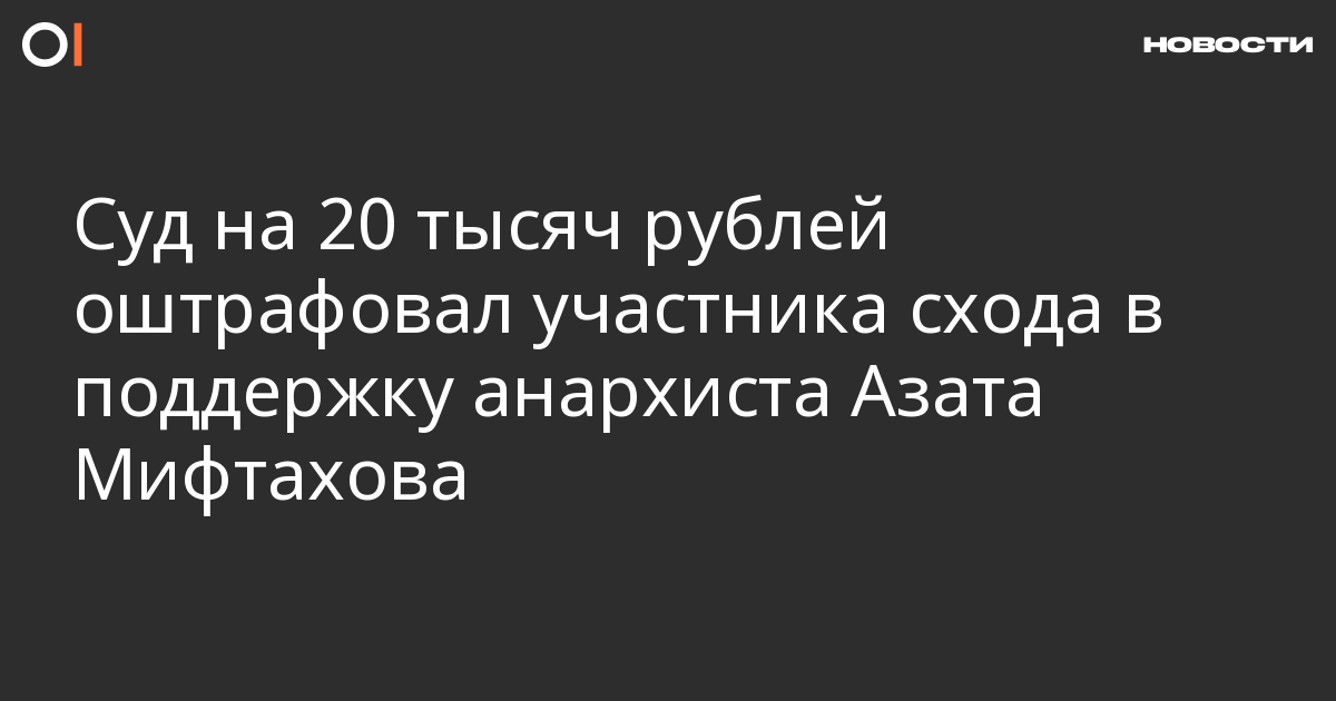 Никулинский районный суд Москвы на 20 тысяч рублей оштрафовал гражданского активиста Константина Котова, задержанного на сходе в поддержку анархиста Азата Мифтахова. Об этом ОВД-Инфо рассказала координатор юридической помощи проекта Алла Фролова.