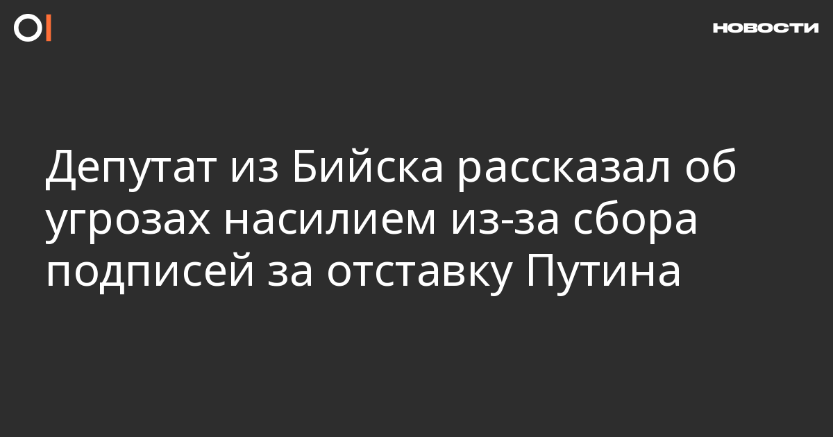 Депутат города Бийска в Алтайском крае Евгений Корчагин написал в ФСБ жалобу об угрозах насилием из-за сбора подписей за отставку президента. Об этом он сообщил «Сибирь. Реалии».