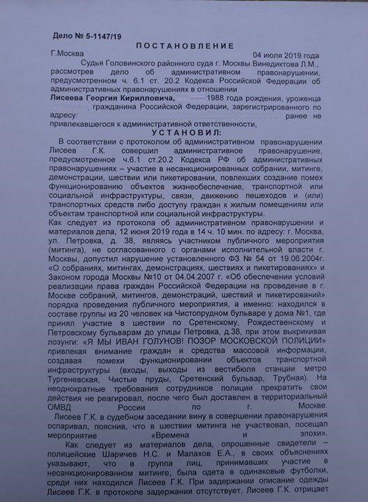 - 12 июня на марше в поддержку Ивана Голунова и против фабрикации уголовных дел в Москве задержали 530 человек. Мы следим за судебными решениями и собираем их здесь.
