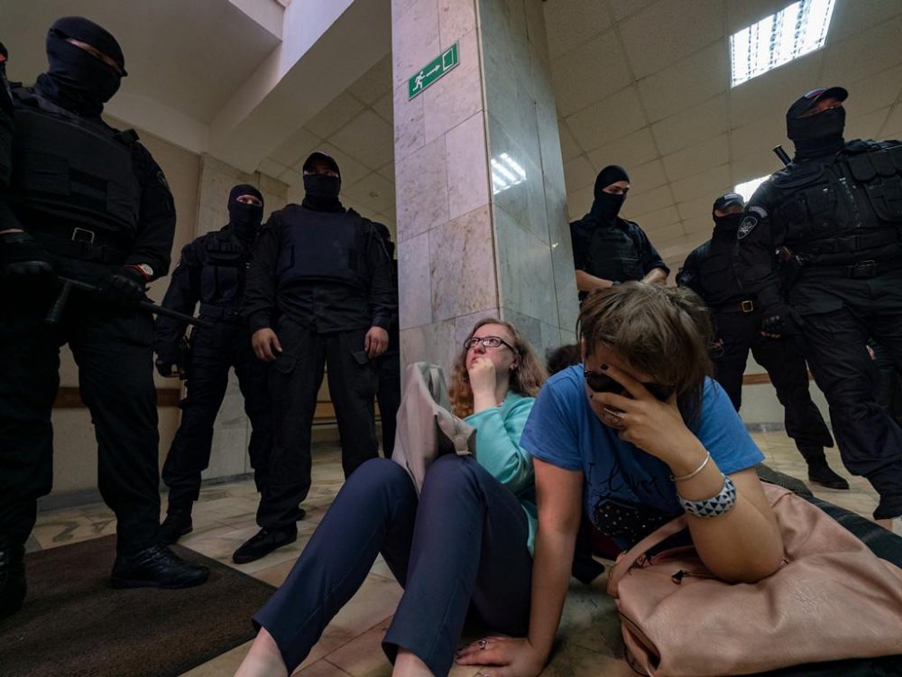 При задержании люди в масках использовали дубинки, толкали слушателей к выходу из здания суда, хватали за руки и за ноги. Несколько человек увезли на скорой помощи. Задержанных в итоге доставили в соседний отдел полиции. На троих из них составили протоколы о неповиновении требованиям судебного пристава (ч.2 ст. 17.3 КоАП).