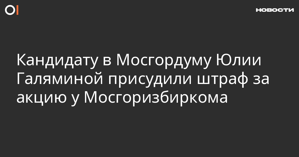 Хамовнический суд Москвы присудил штраф Юлии Галяминой, кандидату в Мосгордуму по округу № 9. Об этом написала у себя в фейсбуке сама кандидат.