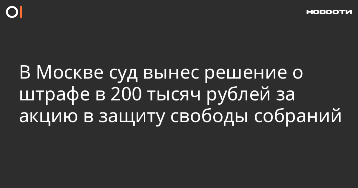Активиста Даниила Латышева оштрафовали на 200 тысяч за акцию в защиту свободы собраний на Тверской. Об этом ОВД-Инфо сообщила правозащитница Ирина Яценко.
