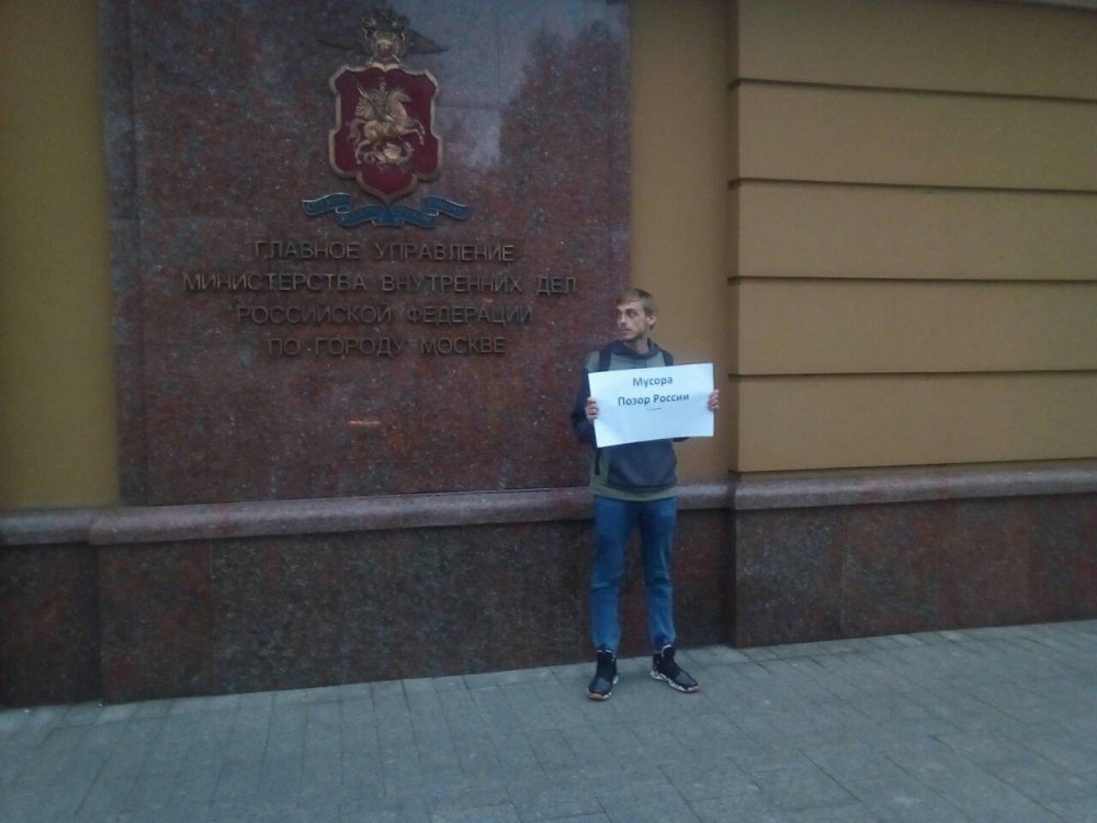 5 августа Кондратьев вышел с плакатом «Мусора Позор России» к Главному управлению МВД по Москве на Петровке, 38 в продолжение серии одиночных пикетов за право на мирные собрания. Сотрудники полиции задержали участника Avtozak LIVE и доставили в ОВД «Тверской». В отделе полиции один из силовиков заметил Кондратьеву, что лично его плакат не оскорбил, «так как там только про плохих носителей формы написано».