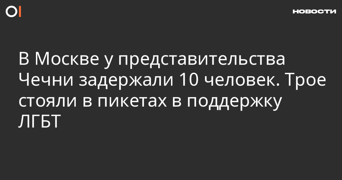В Москве возле представительства Чечни задержали активистов, стоявших с одиночным пикетом в поддержку ЛГБТ, и рядом находившихся людей, всего 10 человек. Об этом сообщила участница ЛГБТ-инициативы Action! Анастасия Резюк.
