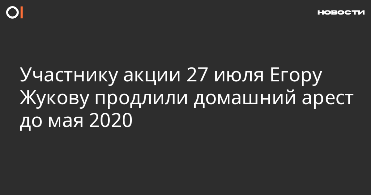 Кунцевский районный суд Москвы продлил домашний арест бывшему фигуранту «московского дела», участнику акции 27 июля Егору Жукову. Об этом сообщает «МБХ медиа» со ссылкой на адвоката Жукова Леонида Соловьева.