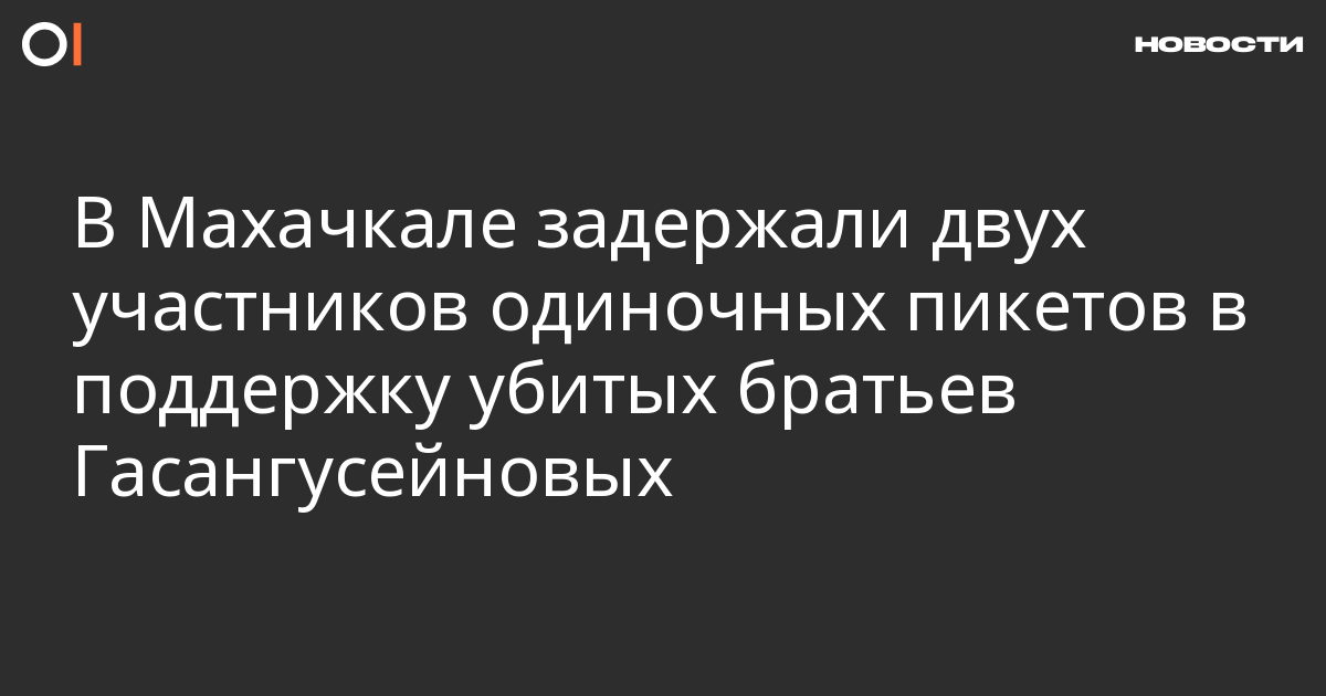 В Махачкале полицейские задержали Ислама Меджидова и Магомеда Дибирова, которые проводили одиночные пикеты в поддержку убитых братьев Гасангусейновых. Об этом ОВД-Инфо сообщил дагестанский журналист, пожелавший остаться анонимным.