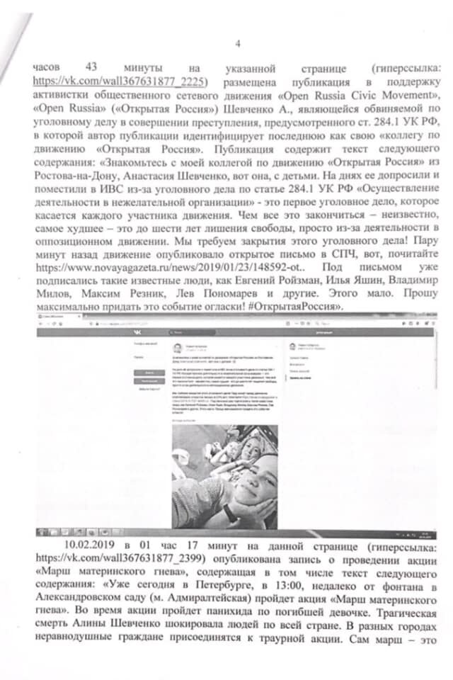 Помощник прокурора Приморского района Петербурга решил, что эти публикации содержат «пропаганду деятельности общественного сетевого движения „Open Russia Civic Movement“».