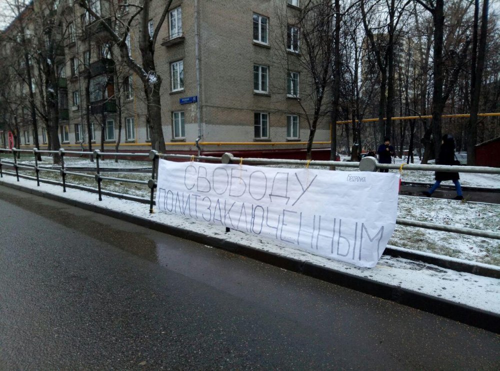 Активисты «бессрочки» вывесили рядом со зданием суда, где сегодня слушается дело Егора Жукова, баннер «свободу политзаключенным». Правоохранители заставили Посицельского снять баннер и задержали активиста.