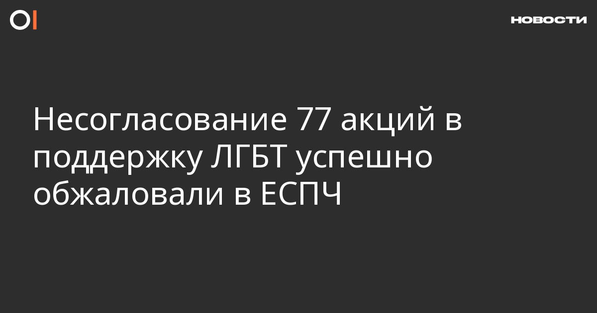 Европейский суд по правам человека 16 января опубликовал решение по жалобам на несогласование российскими властями 77 акций в поддержку ЛГБТ. Об этом также пишет ЛГБТ-активист Николай Алексеев на своей странице ВКонтакте.