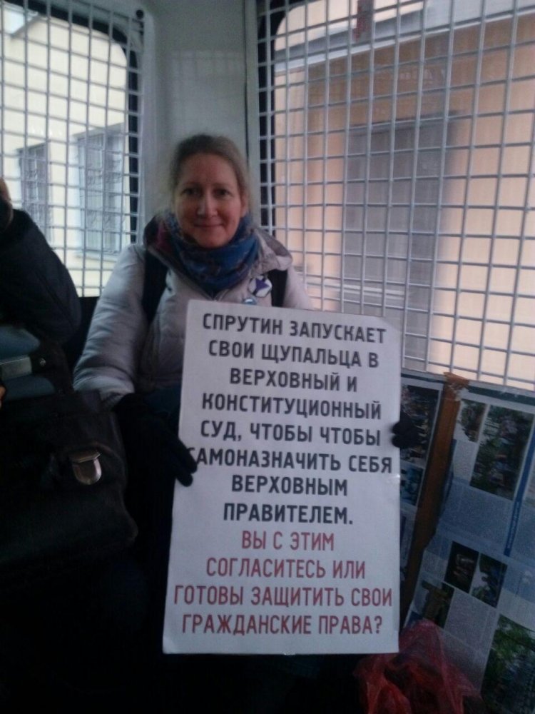 Мусин вернулся на пикет с плакатом «Путинские поправки — плевок вам в лицо». У него изъяли плакат без протокола.