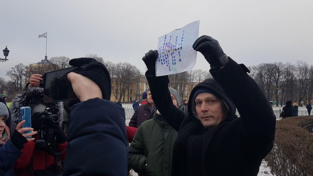 В Санкт-Петербурге на Сенатской площади 1 февраля состоялся народный сход против изменения Конституции. Через полчаса после начала мероприятия полицейские стали задерживать собравшихся, сообщили очевидцы в правовой бот ОВД-Инфо.