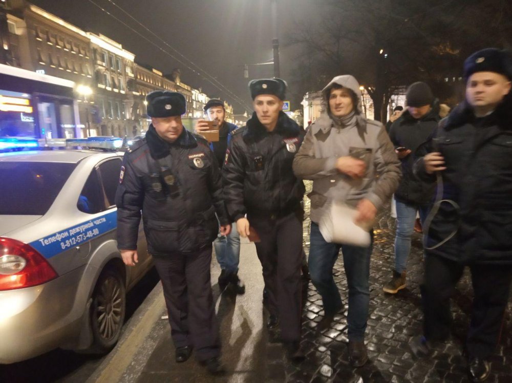 На Караванной улице также по чьей-то жалобе задержали Андрея Макашова, который просто шел по городу. Его везут в 78 отдел полиции, сообщил Макашов ОВД-Инфо.