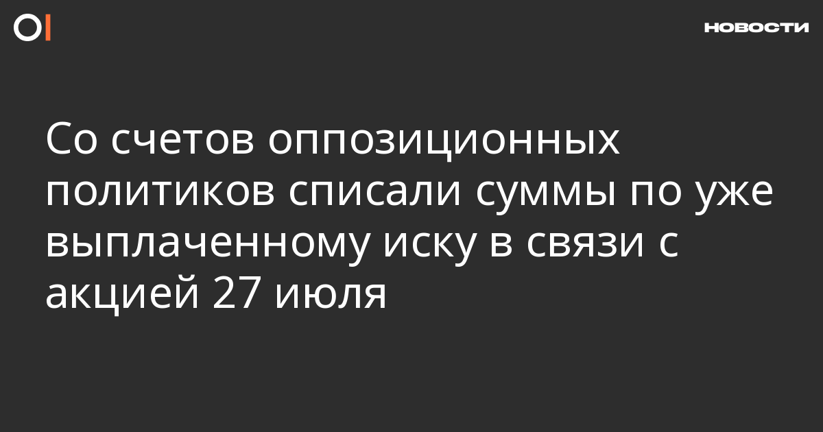 Со счетов оппозиционных политиков Ивана Жданова, Ильи Яшина, Олега Степанова списали по 56 тысяч рублей в связи с иском Московского метрополитена, поданного по следам акции 27 июля. Об этом Иван Жданов пишет в фейсбуке.
